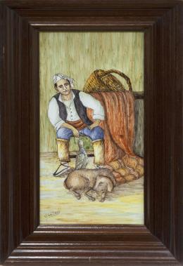 <span class='ref_item'>114 -</span> <span class="description">PERSONAJE ARAGONÉS CON ANIMALES </span>  <p><span class="description">VICENTE GALLÉN (Valencia, 1936) Azulejo pintado a mano Firmado en el ángulo inferior izquierdo. Medidas: 52,5 x 33cm enmarcado. 40 x 20cm sin enmarcar.</span></p>