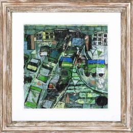 <span class='ref_item'>119 -</span> <span class="object_title">"COMPOSICIÓN", 1991</span>   <p><span class="author">MARTIN HANOOS (Iraq, 1958)</span> <br><span class="technique_material">Técnica mixta sobre cartulina</span><br><span class="technical_description">Vista de una ciudad con edificios y coches realizada con líneas y colores planos, elementos protagonistas de la obra del artista. <br/>Firmado y fechado en la zona inferior central.<br/>Medidas sin marco: 30 x 30cm. Enmarcado con cristal. Medidas con marco: 47.5 x 47.5cm.</span><br></p>