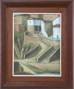 <span class='ref_item'>118 -</span> <span class="description">CASAS CON CAMINO GEOMÉTRICO </span>  <p><span class="description">JOSE RAMON AROSTEGUI (1899-1988) <br>Óleo sobre lienzo<br>Firmado por el autor en el ángulo inferior. <br>Con marco de madera.<br>Medidas: 38 x 46cm con marco. 24 x 32cm sin marco</span></p>