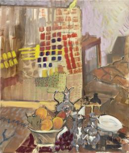 <span class='ref_item'>124 -</span> <span class="description">RINCÓN DEL ESTUDIO </span>  <p><span class="description">ISIDORO LAZARO FERRE (1949) <br>Óleo sobre lienzo<br>Bodegón con frutas y teteras<br>Firmado en el ángulo inferior derecho<br>Al dorso titulado, firmado y dedicado<br>Sin enmarcar<br>81 cm.x65 cm.</span></p>