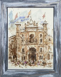 <span class='ref_item'>117 -</span> <span class="description">FACHADA PRINCIPAL DE LA PLAZA DE TOROS DE LAS VENTAS, 2004 </span>  <p><span class="description">HUMBERTO PARRA (Lima, Perú, 1960) <br>Acuarela y tinta sobre papel<br>Firmado y fechado en el ángulo inferior derecho. <br>Enmarcado con cristal.<br>Medidas: 48 x 38cm con marco</span></p>