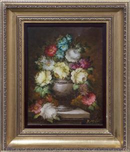 <span class='ref_item'>115 -</span> <span class="description">"BODEGÓN DE FLORES II" </span>  <p><span class="description">ROBERT MICHEL (Francia, 1940-2015) <br>Óleo sobre lienzo<br>Muestra un florido jarrón con flores de distintos tipos. Realizado con una pincelada muy detallada. El lienzo presenta ligeras marchas.<br>Firmado en la esquina inferior derecha. <br>Enmarcado en madera tallada y dorada. <br>Medidas con marco: 48,5 x 39,5cm</span></p>