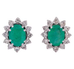 <span class='ref_item'>96 -</span> <span class="object_title">PENDIENTES EN ORO 18KT, ESMERALDAS Y DIAMANTES</span>  <p><span class="technical_description">Pareja de pendientes realizados en oro de 18kt. Diseño de roseta con esmeraldas en talla oval de peso total aprox 3.50ct y orla de diamantes en talla brillante con peso total aprox 1ct. <br/>Cierre: Omega</span><br>Peso: <span class="PESO_HCES1">8,20</span> <span class="PESOUMED_HCES1">gr.</span><br></p>