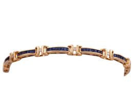 <span class='ref_item'>107 -</span> <span class="object_title">PULSERA EN ORO 18KT, ZAFIROS Y DIAMANTES</span>  <p><span class="technical_description">Pulsera realizada en oro de 18kt. Carriles con zafiros en talla galería cuadrada con peso total aprox 1.75ct unidos por eslabones adornados por diamante central en talla brillante con peso aprox 0.25ct<br/>Cierre: Caja con lengüeta y doble ocho de seguridad<br/>Longitud: 18cm</span><br>Peso: <span class="PESO_HCES1">13,50</span> <span class="PESOUMED_HCES1">gr.</span><br></p>