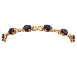 <span class='ref_item'>110 -</span> <span class="object_title">PULSERA EN ORO BICOLOR 18KT, ZAFIROS Y DIAMANTES</span>  <p><span class="technical_description">Pulsera realizada en oro bicolor de 18kt. Adornada por zafiros en talla oval con peso total aprox 15ct, unidos por eslabones pequeños cuajados de diamantes en talla brillante sobre vistas en blanco con peso total aprox 0.20ct. <br/>Cierre: Caja con lengüeta y doble ocho de seguridad<br/>Longitud: 17cm<br/>RefC 2155</span><br>Peso: <span class="PESO_HCES1">15,80</span> <span class="PESOUMED_HCES1">gr.</span><br></p>