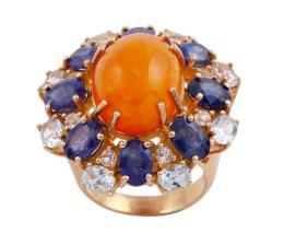 <span class='ref_item'>117 -</span> <span class="object_title">SORTIJA EN PLATA DE LEY, ÓPALO, ZAFIROS Y AGUAMARINA</span>  <p><span class="technical_description">Sortija realizada en plata de ley chapada en oro. Ópalo de fuego central en cabujón oval y en orla 8 zafiros en talla oval alternados con aguamarinas en talla oval y redonda.<br/>Medida Sortija: 19<br/>Ref 11562</span><br>Peso: <span class="PESO_HCES1">16,80</span> <span class="PESOUMED_HCES1">gr.</span><br></p>