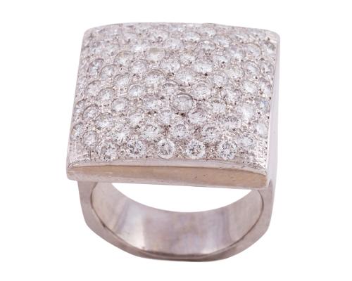 <span class='ref_item'>119 -</span> <span class="object_title">SORTIJA EN ORO MACIZO DE 18 KT Y DIAMANTES</span>  <p><span class="technical_description">Gran sortija de diseño cuadrado realizada en oro macizo de 18kt, frontal cuajado de diamantes en talla brillante engastado en pavé con peso total aprox (3ct).<br/>Medida: 12</span><br>Peso: <span class="PESO_HCES1">23,30</span> <span class="PESOUMED_HCES1">gr.</span><br></p>