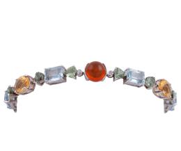 <span class='ref_item'>155 -</span> <span class="object_title">PULSERA EN ORO 18KT, ZAFIROS, TOPACIOS, CITRINOS Y ÁMBAR</span>  <p><span class="technical_description">Pulsera realizada en oro de 18kt. Compuesta por topacios azules y blancos con peso total aprox 3.75ct, zafiros fancy verdes con peso total aprox 1.15ct, citrinos con peso total aprox 2ct y cabujones de ámbar<br/>Cierre: Caja con lengüeta y doble ocho de seguridad<br/>Longitud: 17cm<br/>RefC 4311GP</span><br>Peso: <span class="PESO_HCES1">17,30</span> <span class="PESOUMED_HCES1">gr.</span><br></p>