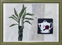 <span class='ref_item'>63 -</span> <span class="object_title">PALMERA Y CAFETERA</span>   <p><span class="author">JUAN VIDA (España, 1955)</span> <br><span class="technique_material">Litografía</span><br><span class="technical_description">Litografía a color representando una palmera y una cafetera en formas casi geométricas. Firmado y numerado 97/125 a lápiz en zona inferior por el artista. Con sello en seco en ángulo superior derecha.<br/>Enmarcado en madera con cristal.<br/>Medidas marco:58x71,5cm</span><br></p>