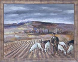 <span class='ref_item'>46 -</span> <span class="object_title">PAISAJE CON PASTOR</span>   <p><span class="author">ESCUELA ESPAÑOLA CONTEMPORÁNEA , S.XX.</span> <br><span class="technique_material">Óleo sobre lienzo</span><br><span class="technical_description">Vista de una cosecha protagonizada por un pastor junto a sus ovejas. <br/>Enmarcado en madera.<br/>Medidas con marco: 100x130cm</span><br></p>
