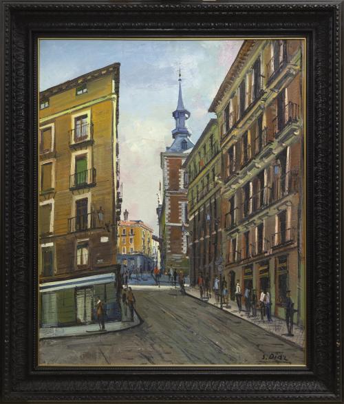 <span class='ref_item'>48 -</span> <span class="object_title">CALLE IMPERIAL, MADRID</span>   <p><span class="author">SANTIAGO DÍAZ SANTOS (Madrid, 1940)</span> <br><span class="technique_material">Óleo sobre lienzo</span><br><span class="technical_description">Firmado en el ángulo inferior derecho. Titulado al dorso<br/>Enmarcado<br/>Medidas: 88 x 75cm con marco. 73 x 60cm sin marco</span><br></p>