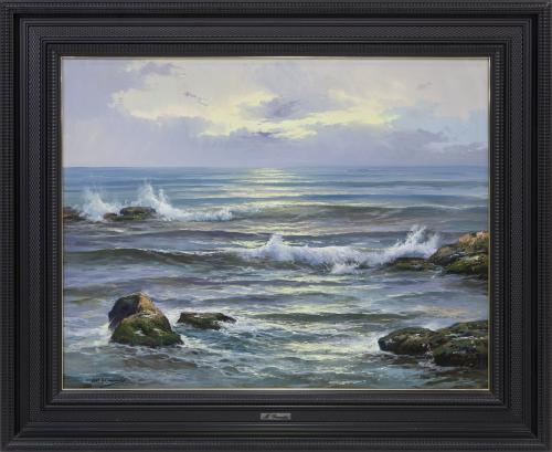<span class='ref_item'>52 -</span> <span class="object_title">VISTA MARINA</span>   <p><span class="author">MARIO GRANADOS (España, 1943)</span> <br><span class="technique_material">Óleo sobre lienzo</span><br><span class="technical_description">Vista de las olas del mar destacando el perfecto trabajo del detalle y la luz. <br/>Firmado por el autor en el ángulo inferior izquierdo.<br/>Enmarcado en madera tallada y ebonizada con placa de autor.<br/>Medidas marco: 84,5x110,5cm</span><br></p>