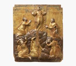 <span class='ref_item'>90 -</span> <span class="object_title">LA TRANSFIGURACIÓN DE CRISTO. ESCUELA ESPAÑOLA, S.XVI</span>   <p><span class="technique_material">Madera</span><br><span class="technical_description">Fragmento en altorrelieve que representa la Transfiguración de Cristo, acompañado por Moisés y Elías en el monte Tabor, junto a Pedro, Santiago y Juan. Realizado en madera tallada, estofada y policromada, es un conjunto ricamente trabajado con un fondo monocromo dorado que resalta las figuras en composición piramidal. Presenta algunas faltas por el paso del tiempo. Con alguna restauración. </span><br><span class="ALTO_HCES1">102 </span><span class="ALTOUMED_HCES1">cm.</span>x<span class="ANCHO_HCES1">85,50 </span><span class="ANCHOUMED_HCES1">cm.</span></p>