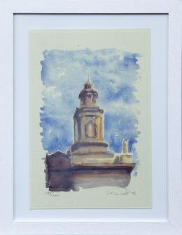 <span class='ref_item'>86 -</span> <span class="object_title">SANTIAGO </span>   <p><span class="author">FERNANDO X. GONZÁLEZ (Buenos Aires, 1956)</span> <br><span class="technique_material">Impresión a color</span><br><span class="technical_description">Muestra la torre campanario de la catedral de Santiago de Chile, en distintas tonalidades de marrón y gris. Pertenece a un conjunto de 26 impresiones de la colección Ciudades, publicada por la Concejalía de Cultura del Ayuntamiento de Madrid en 1998.<br/>Firmado y numerado por el autor en ángulo derecho realizado a lápiz. Número de serie 198/200 en el ángulo inferior izquierdo.<br/>Enmarcado con cristal<br/>Medidas: 44 x 35cm con marco.</span><br></p>