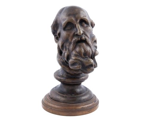<span class='ref_item'>98 -</span> <span class="object_title">ESCULTURA EN BRONCE PATINADO DE LA CABEZA DE MIGUEL ÁNGEL DEL SIGLO XIX</span>   <p><span class="technical_description">Escultura realizada en bronce patinado representando la cabeza del artista del Renacimiento italiano Miguel Ángel (Michelangelo Buonarroti).<br/>Sobre una peana redonda de madera.<br/>Autoría anónima.<br/>Medidas con peana: 29.5 cm<br/>Peso: 5920gr</span><br></p>