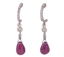 <span class='ref_item'>229 -</span> <span class="object_title">PENDIENTES EN ORO 18KT, RUBÍES Y DIAMANTES</span>  <p><span class="technical_description">Pareja de pendientes con movimiento realizados en oro de 18kt. Formados por rubíes masivos en cabujón con forma de gota y peso total aprox 1.60ct y en la parte superior diamantes en talla brillante con peso total aprox 0.20ct. <br/>Cierre: Presión<br/>Longitud: 3cm</span><br>Peso: <span class="PESO_HCES1">2,40</span> <span class="PESOUMED_HCES1">gr.</span><br></p>