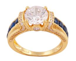 <span class='ref_item'>215 -</span> <span class="object_title">SORTIJA EN PLATA DE LEY MACIZA CHAPADA EN ORO CON CIRCONITA  Y PIEDRAS AZULES</span>  <p><span class="technical_description">Sortija realizada en plata de ley maciza chapada en oro , adornada por gran circonita en talla brillante de aprox (2 ct) y piedras azules.<br/>Medida: 10</span><br>Peso: <span class="PESO_HCES1">4,20</span> <span class="PESOUMED_HCES1">gr.</span><br></p>