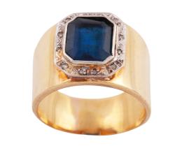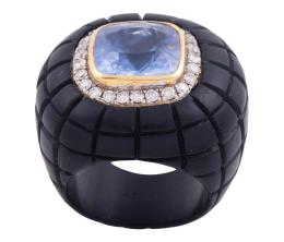 <span class='ref_item'>251 -</span> <span class="object_title">SORTIJA EN ÉBANO, ORO 18KT, ZAFIRO Y DIAMANTES</span>  <p><span class="technical_description">Sortija realizada en ébano. Con zafiro central en talla cojín con peso aprox 6.45ct engastado en bisel de oro de 18kt y rodeado de diamantes en talla brillante con peso total aprox 0.40ct.<br/>Medida Sortija: 12<br/>RefC 9272GP</span><br>Peso: <span class="PESO_HCES1">9,20</span> <span class="PESOUMED_HCES1">gr.</span><br></p>