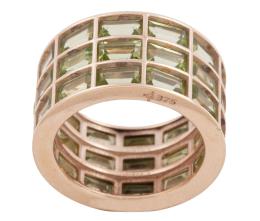 <span class='ref_item'>234 -</span> <span class="object_title">SORTIJA EN ORO 9KT Y PERIDOTOS</span>  <p><span class="technical_description">Sortija ancha realizada en oro 9kt. Formada por tres bandas de peridotos en talla rectangular con peso total aprox 2.50ct<br/>Medida Sortija: 12<br/>RefC GE-3488</span><br>Peso: <span class="PESO_HCES1">10,50</span> <span class="PESOUMED_HCES1">gr.</span><br></p>