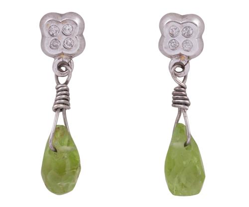 <span class='ref_item'>233 -</span> <span class="object_title">PENDIENTES EN ORO 18KT, PERIDOTOS Y DIAMANTES</span>  <p><span class="technical_description">Pareja de pendientes con movimiento realizados en oro de 18kt. Formados por peridotos en talla briolette con peso total aprox 0.90ct y en la parte superior diamantes en talla brillante con peso total aprox 0.08ct. <br/>Cierre: Presión<br/>Longitud: 1,9cm</span><br>Peso: <span class="PESO_HCES1">1,20</span> <span class="PESOUMED_HCES1">gr.</span><br></p>