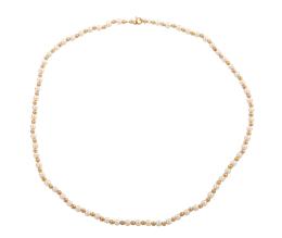 <span class='ref_item'>56 -</span> <span class="object_title">COLLAR-GARGANTILLA DE PERLAS CULTIVADAS Y ORO BAJO</span>  <p><span class="technical_description">Collar gargantilla formado por pequeñas perlas cultivadas de color blanco alternadas con bolitas de oro bajo<br/>Cierre: Reasa en oro bajo<br/>Longitud: 46.5cm<br/> </span><br>Peso: <span class="PESO_HCES1">8,80</span> <span class="PESOUMED_HCES1">gr.</span><br></p>