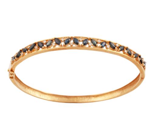 <span class='ref_item'>44 -</span> <span class="object_title">PULSERA RIGIDA EN ORO MACIZO DE 18KT, ZAFIROS Y DIAMANTES</span>  <p><span class="technical_description">Pulsera rígida realizada en oro macizo de 18kt adornada por zafiros en talla marquise con peso aprox (1ct) y diamantes en talla brillante con peso aprox (0.15ct)<br/>Cierre: lengüeta y ocho de seguridad</span><br>Peso: <span class="PESO_HCES1">13,20</span> <span class="PESOUMED_HCES1">gr.</span><br></p>