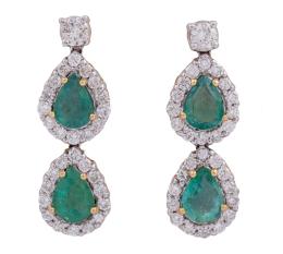 <span class='ref_item'>82 -</span> <span class="object_title">PENDIENTES EN ORO BICOLOR 18KT, ESMERALDAS Y DIAMANTES</span>  <p><span class="technical_description">Pendientes largos con movimiento realizados en oro bicolor de 18kt. Con esmeraldas en talla perilla, engastadas en garras, con un peso total aprox de 4ct. Orla y parte superior formadas por diamantes en talla brillante, engastados en grano, con un peso total aprox de 2ct.<br/>Cierre: Presión<br/>Longitud: 3cm</span><br>Peso: <span class="PESO_HCES1">9,10</span> <span class="PESOUMED_HCES1">gr.</span><br></p>