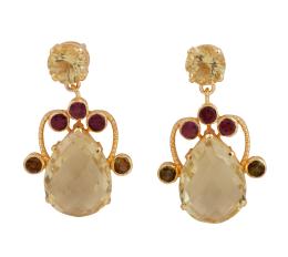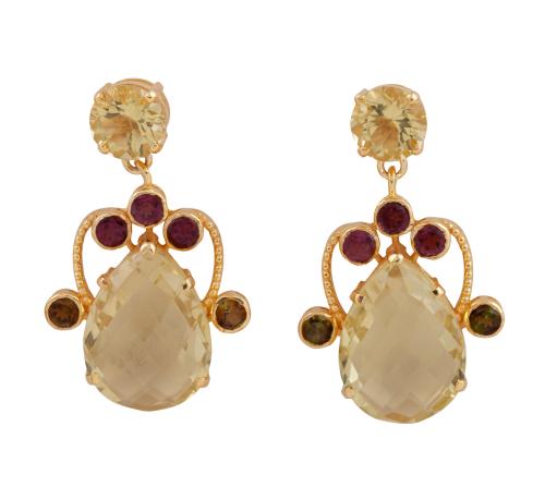 <span class='ref_item'>71 -</span> <span class="object_title">PENDIENTES EN PLATA DE LEY, CITRINOS Y TURMALINAS</span>  <p><span class="technical_description">Pendientes largos con movimiento realizados en plata de ley. Adornados por cuarzos citrinos en talla redonda y pera, y turmalinas verdes y rojizas en talla redonda<br/>Cierre: Presión<br/>Longitud: 3,3cm<br/>Ref 15056</span><br>Peso: <span class="PESO_HCES1">8,90</span> <span class="PESOUMED_HCES1">gr.</span><br></p>