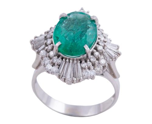 <span class='ref_item'>83 -</span> <span class="object_title">SORTIJA EN PLATINO, ESMERALDA Y DIAMANTES</span>  <p><span class="technical_description">Sortija realizada en platino. Esmeralda central en talla oval con peso aprox 4.38ct y en orla diamantes en talla baguette y brillante con peso total aprox 1.52ct<br/>Medida Sortija: 16<br/>Ref 14548</span><br>Peso: <span class="PESO_HCES1">9</span> <span class="PESOUMED_HCES1">gr.</span><br></p>