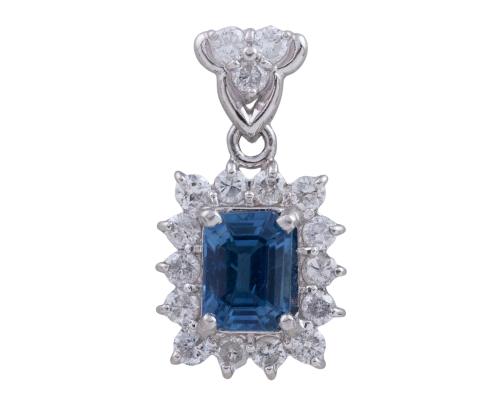 <span class='ref_item'>64 -</span> <span class="object_title">COLGANTE EN PLATINO, ZAFIRO Y DIAMANTES</span>  <p><span class="technical_description">Colgante de dos cuerpos realizado en platino. Con un zafiro en talla esmeralda con peso total aprox (1.15ct) y diamantes en talla brillante con peso total aprox (0.61ct).<br/>ref. 14606</span><br>Peso: <span class="PESO_HCES1">2,90</span> <span class="PESOUMED_HCES1">gr.</span><br></p>