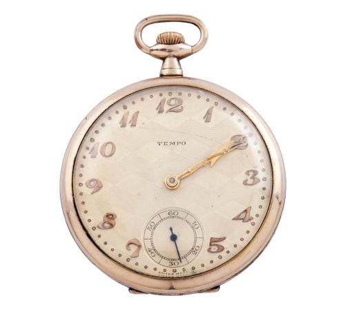 <span class='ref_item'>78 -</span> <span class="object_title">RELOJ LEPINE DE BOLSILLO. SUIZO. TEMPO ROLLED GOLD. SISTEMA REMONTOIR</span>  <p><span class="technical_description">Reloj Lepeine de bolsillo realizado en rolled gold. Suizo. Con sistema remontoir. Caja redonda y bisel liso. Esfera dorada con patrón reticulado firmada TEMPO, numeración arábiga y segundero a las 6h. Numerado 988994. Diámetro: 46mm. En estado de marcha.</span><br>Peso: <span class="PESO_HCES1">57</span> <span class="PESOUMED_HCES1">gr.</span><br></p>