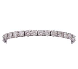 <span class='ref_item'>134 -</span> <span class="object_title">PULSERA RIVIÈRE EN PLATA DE LEY Y MOISSANITAS</span>  <p><span class="technical_description">Pulsera Rivière realizada en plata de ley chapada en oro blanco (baño de rodio). Compuesta por 29 moissanitas en talla brillante, engastadas en garras, con un peso cada una de ellas de 1ct y peso total 29ct.<br/>Cierre: Caja con lengüeta y doble ocho de seguridad<br/>Longitud: 20cm</span><br>Peso: <span class="PESO_HCES1">23,30</span> <span class="PESOUMED_HCES1">gr.</span><br></p>
