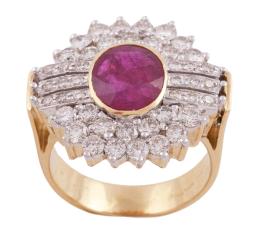 <span class='ref_item'>132 -</span> <span class="object_title">SORTIJA EN ORO BICOLOR 18KT, RUBÍ Y DIAMANTES</span>  <p><span class="technical_description">Sortija realizada en oro bicolor de 18kt. Rubí central en talla oval con peso aprox 2.80ct, rodeado de cuajado de diamantes en talla brillante con peso total aprox 2ct. Se adjunta copia de certificados EMIL 72358-7, GIA 6192476735<br/>Medida Sortija: 13<br/>RefC 3932</span><br>Peso: <span class="PESO_HCES1">10,30</span> <span class="PESOUMED_HCES1">gr.</span><br></p>
