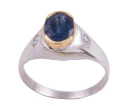 <span class='ref_item'>141 -</span> <span class="object_title">SORTIJA EN PLATA DE LEY Y ORO DE 18KT, ZAFIRO Y DIAMANTES</span>  <p><span class="technical_description">Sortija realizada en plata de ley y oro de 18kt. Con un zafiro en talla oval y dos diamantes en talla brillante. <br/>Medida sortija: 14<br/>Ref: SR 6264</span><br>Peso: <span class="PESO_HCES1">3,10</span> <span class="PESOUMED_HCES1">gr.</span><br></p>