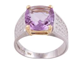 <span class='ref_item'>127 -</span> <span class="object_title">SORTIJA EN PLATA DE LEY Y ORO DE 18KT Y AMATISTA</span>  <p><span class="technical_description">Sortija realizada en plata de ley y oro de 18kt. Con una amatista en talla cojín.<br/>Medida sortija: 14<br/>Ref: SR 6333</span><br>Peso: <span class="PESO_HCES1">4</span> <span class="PESOUMED_HCES1">gr.</span><br></p>