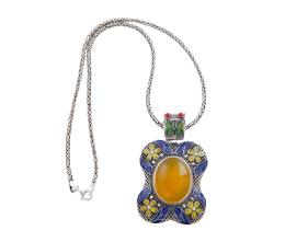 <span class='ref_item'>133 -</span> <span class="object_title">COLGANTE CON CORDÓN EN PLATA DE LEY, ESMALTES, CUARZO Y CORAL </span>  <p><span class="technical_description">Colgante con cordón realizados en plata de ley con calados y esmaltes azules y dorados. Cuarzo central color dorado en talla cabujón con peso total aprox (13ct). Con dos pequeños corales en el asa. Cordón de tipo espiga fantasía con cierre mosquetón.<br/>Longitud: 40cm</span><br>Peso: <span class="PESO_HCES1">50,40</span> <span class="PESOUMED_HCES1">gr.</span><br></p>