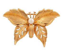 <span class='ref_item'>139 -</span> <span class="object_title">BROCHE FANTASÍA CON BAÑO DE ORO DE 14KT Y ADORNO DE SÍMIL DE PERLA</span>  <p><span class="technical_description">Broche fantasía realizado en metal con baño de oro de 14kt y un símil de perla central y alas caladas.<br/>Cierre: de aguja</span><br>Peso: <span class="PESO_HCES1">3,80</span> <span class="PESOUMED_HCES1">gr.</span><br></p>