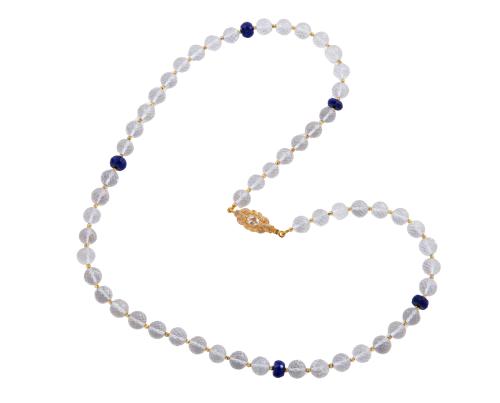 <span class='ref_item'>129 -</span> <span class="object_title">COLLAR DE CUARZOS Y LAPISLÁZULI. BROCHE EN PLATA DE LEY CON DIAMANTES</span>  <p><span class="technical_description">Collar de cuentas esféricas facetadas de cuarzos blancos con otras aplanadas de lapislázuli, también facetadas. Broche realizado en plata de ley adornado con cuarzo blanco y pequeños diamantes en talla roca, de cierre de caja con lengüeta.<br/>Longitud: 60cm<br/>Ref 16192</span><br>Peso: <span class="PESO_HCES1">57,40</span> <span class="PESOUMED_HCES1">gr.</span><br></p>