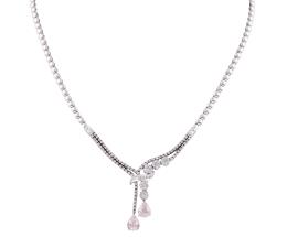 <span class='ref_item'>160 -</span> <span class="object_title">GARGANTILLA EN ORO 18KT, MORGANITAS Y DIAMANTES</span>  <p><span class="technical_description">Gargantilla realizada en oro de 18kt. Adornada con diamantes en talla brillante en 5 rosetas de peso aprox 0.25ct cada una y en hileras con peso total aprox 0.57ct, además de banda de diamantes en talla baguette de peso total aprox 0.20ct. Rematan dos morganitas en talla perilla con peso total aprox 2.80ct<br/>Peso total aprox de todos los diamantes: 2.02ct<br/>Cierre: Caja con lengüeta y ocho de seguridad<br/>Longitud: 45cm<br/>RefC 65176</span><br>Peso: <span class="PESO_HCES1">31,90</span> <span class="PESOUMED_HCES1">gr.</span><br></p>