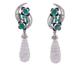 <span class='ref_item'>163 -</span> <span class="object_title">PENDIENTES EN PLATA DE LEY CON ESMERALDAS, CRISTAL DE ROCA Y DIAMANTES</span>  <p><span class="technical_description">Pendientes de dos cuerpos realizados en plata de ley. Con esmeraldas en talla oval y en talla redonda, cristal de roca y diamantes.<br/>Cierre: Presión<br/>Longitud: 5.5 cm<br/>Ref: 16575<br/> </span><br>Peso: <span class="PESO_HCES1">13,10</span> <span class="PESOUMED_HCES1">gr.</span><br></p>