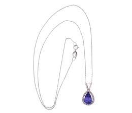 <span class='ref_item'>185 -</span> <span class="object_title">COLGANTE Y CADENA EN ORO MACIZO DE 18 KT. TANZANITA Y DIAMANTES</span>  <p><span class="technical_description">Colgante y cadena realizados en oro de 18 kt, el colgante con tanzanita en talla perilla y peso aprox ( 1,25 ct ) rodeada por diamantes en talla brillante y peso total aprox ( 0,12 ct).<br/>Cadena de fino eslabón barbado y cierre con reasa.<br/> Longitud : 40 cm</span><br>Peso: <span class="PESO_HCES1">1,80</span> <span class="PESOUMED_HCES1">gr.</span><br></p>