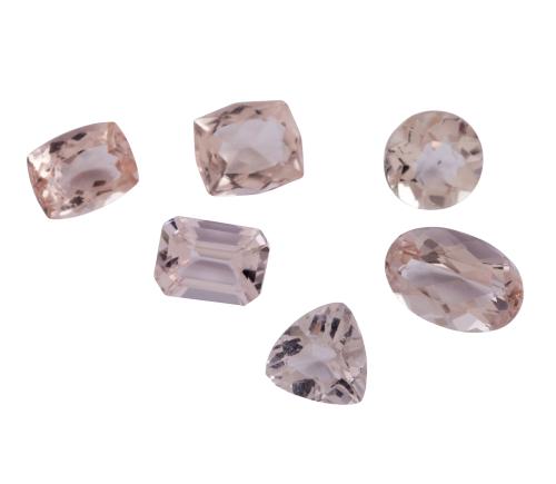 <span class='ref_item'>72 -</span> <span class="object_title">MORGANITAS DE DIFERENTES TALLAS Y TAMAÑOS CON PESO TOTAL DE 5.70 CT</span>  <p><span class="technical_description">Lote de seis berilos morganitas de diferentes tallas y tamaños.<br/>Peso total: 5.70 ct</span><br></p>
