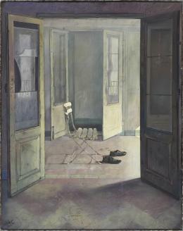 <span class='ref_item'>26 -</span> <span class="object_title">INTERIOR, 2002</span>   <p><span class="author">CARLOS CANALES (Madrid, 1961)</span> <br><span class="technique_material">Óleo sobre lienzo</span><br><span class="technical_description">Firmado por el autor en el ángulo inferior izquierdo. Al dorso firmado y fechado en 2002. <br/>Enmarcado. Desperfectos en el lado derecho del lienzo<br/>Medidas: 158 x 125cm con marco</span><br></p>