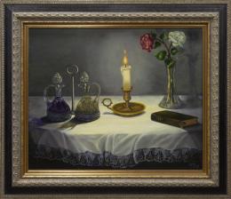 <span class='ref_item'>33 -</span> <span class="object_title">BODEGÓN CON VELA </span>   <p><span class="technique_material">Óleo sobre lienzo</span><br><span class="technical_description">Firmado en el ángulo inferior derecho "Tony".<br/>Con marco de madera tallada de color oscura y parcialmente dorada.<br/>Medidas con marco: 93x96cm</span><br></p>