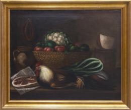<span class='ref_item'>29 -</span> <span class="object_title">"BODEGÓN CON GALLO Y CESTA DE HORTALIZAS"</span>   <p><span class="author">ESCUELA ESPAÑOLA S.XIX  </span> <br><span class="technique_material">Óleo sobre lienzo</span><br><span class="technical_description">Enmarcados en madera dorado.<br/>Medidas con marco: 89 x 105,5cm</span><br></p>