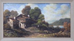 <span class='ref_item'>37 -</span> <span class="object_title">PAISAJE RURAL DE OTOÑO, S.XX</span>   <p><span class="technique_material">Acrílico sobre lienzo adherido a tabla</span><br><span class="technical_description">Escena pastoral en la que aparecen dos aldeanos junto a una casa de piedra rodeados de vegetación y un lago de fondo. <br/>Enmarcado en madera.<br/>Medidas: 46 x 81cm con marco</span><br></p>