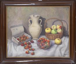 <span class='ref_item'>34 -</span> <span class="object_title">BODEGÓN CON FRUTAS VARIAS Y JARRA DE LOZA (1951)</span>   <p><span class="technique_material">Óleo sobre lienzo</span><br><span class="technical_description">Firmado J. Marzo (pintor español contemporáneo) y fechado en 1951 en el ángulo inferior derecho por el autor.<br/>Enmarcado con marco de madera. Ligeras faltas en el marco.<br/>Medidas: 74 x 87cm con marco. 60 x 73,5cm sin marco</span><br></p>