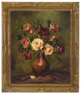 <span class='ref_item'>32 -</span> <span class="object_title">FLORERO</span>   <p><span class="author">GINO KAROLY </span> <br><span class="technique_material">Óleo sobre lienzo</span><br><span class="technical_description">Firmado en el ángulo superior derecho "G. Karol"<br/>Marco en madera tallada y dorada. Ligeros desperfectos en el marco<br/>Medidas: 88,5 x 75cm con marco. 72 x 59cm sin marco</span><br></p>