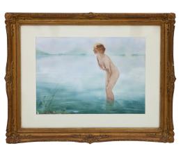 <span class='ref_item'>42 -</span> <span class="object_title">DIBUJO A  ACUARELA REPRESENTANDO MUJER DESNUDA BAÑANDOSE.<br/>AUTOR PAUL EMILE CHABAS</span>   <p><span class="technical_description">Dibujo a acuarela representando a una mujer desnuda bañándose<br/>Autor: Paul Emile Chabas <br/>Medidas con marco: 78cm x 65cm </span><br></p>