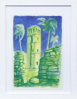 <span class='ref_item'>73 -</span> <span class="object_title">PANAMÁ</span>   <p><span class="author">CARLOS FORNS BADA (Madrid, 1956)</span> <br><span class="technique_material">Impresión a color</span><br><span class="technical_description">Representa un alto campanario con tres palmeras y unas ruinas<br/>Pertenece a un conjunto de 26 impresiones de la colección Ciudades, publicada por la Concejalía de Cultura del Ayuntamiento de Madrid en 1998 por ser capital iberoamericana de la cultura. Cada una acompañada por un fragmento poético de distintos escritores hispanoamericanos.<br/>Firmado y numerado por el autor en ángulo inferior derecho realizado a lápiz. Número de serie 198/200 en el ángulo inferior derecho.<br/>Enmarcado. Medidas: 44 x 34cm con marco y 33 x 22cm sin marco.</span><br></p>